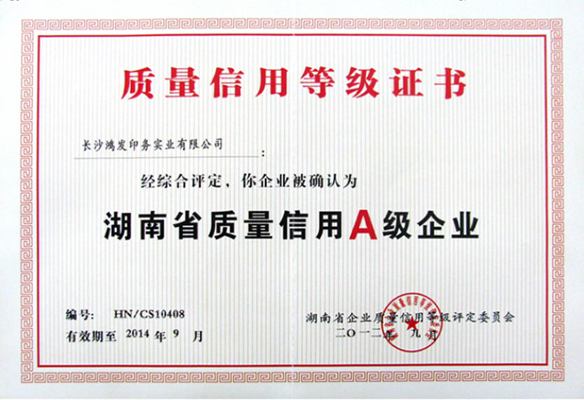 省質(zhì)量信用A級企業(yè)