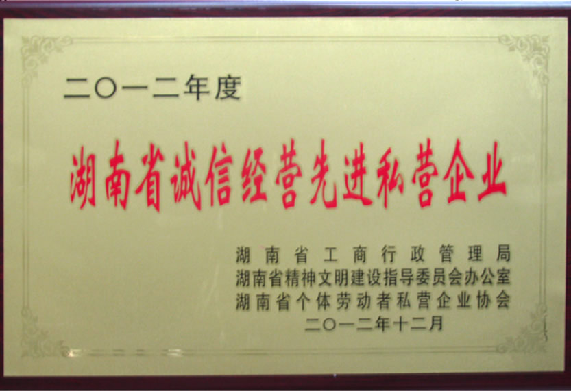2012年度省誠信經(jīng)營先進私營單位