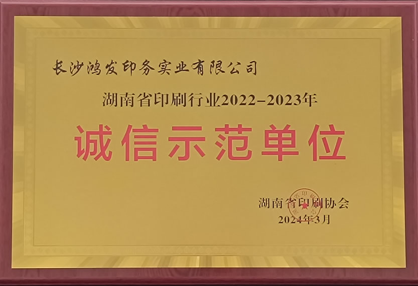 湖南省印刷行業(yè)2022-2023年誠信示范單位