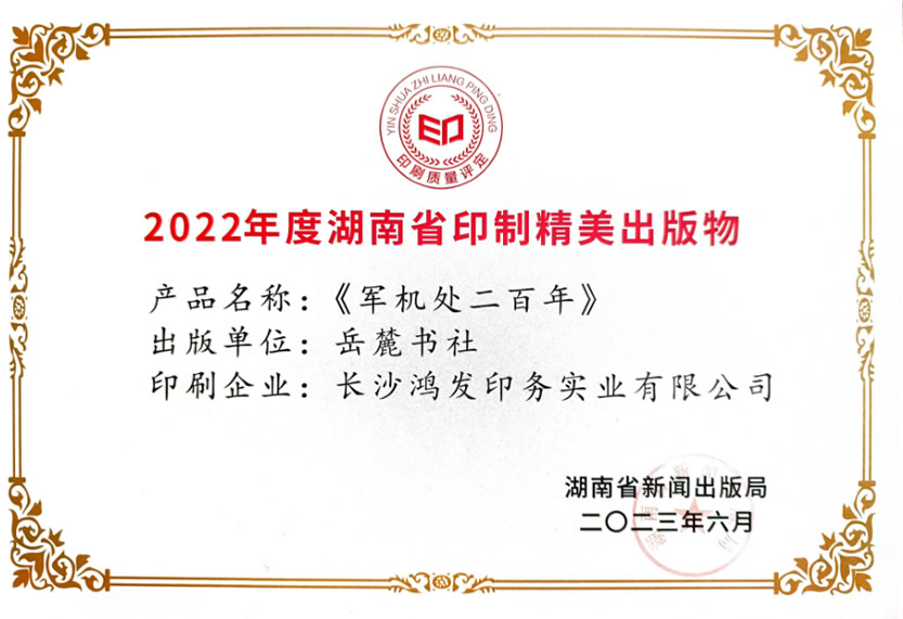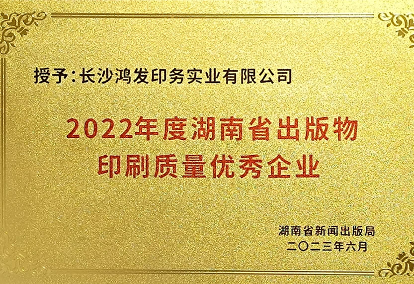 2022年度湖南省出版物印刷質(zhì)量優(yōu)秀企業(yè)
