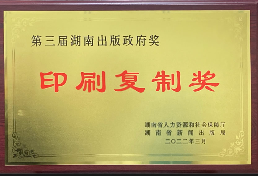 第三屆湖南出版政府獎印刷復(fù)制獎